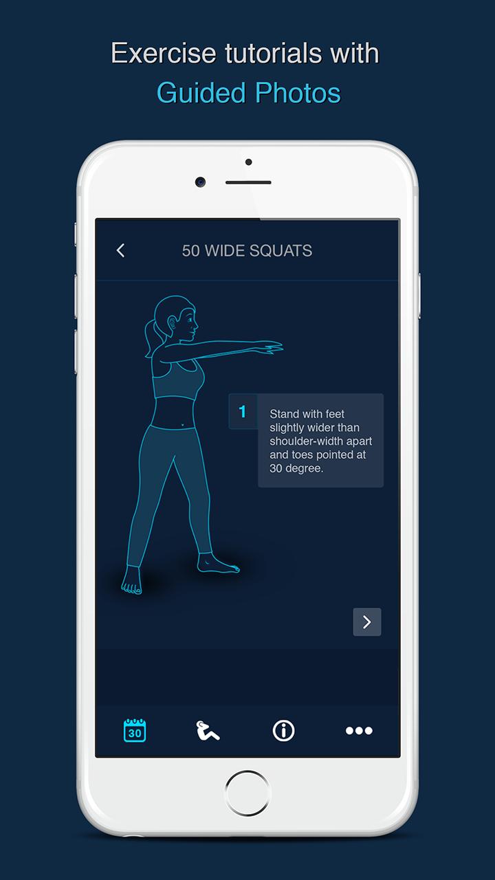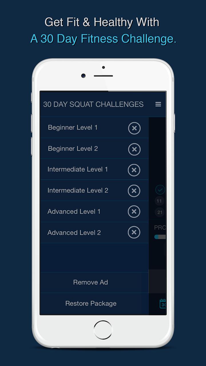 Приложение 30 -дневного приседания включает в себя 6 интенсивных тренировок на основе приседа для начинающих и экспертов.