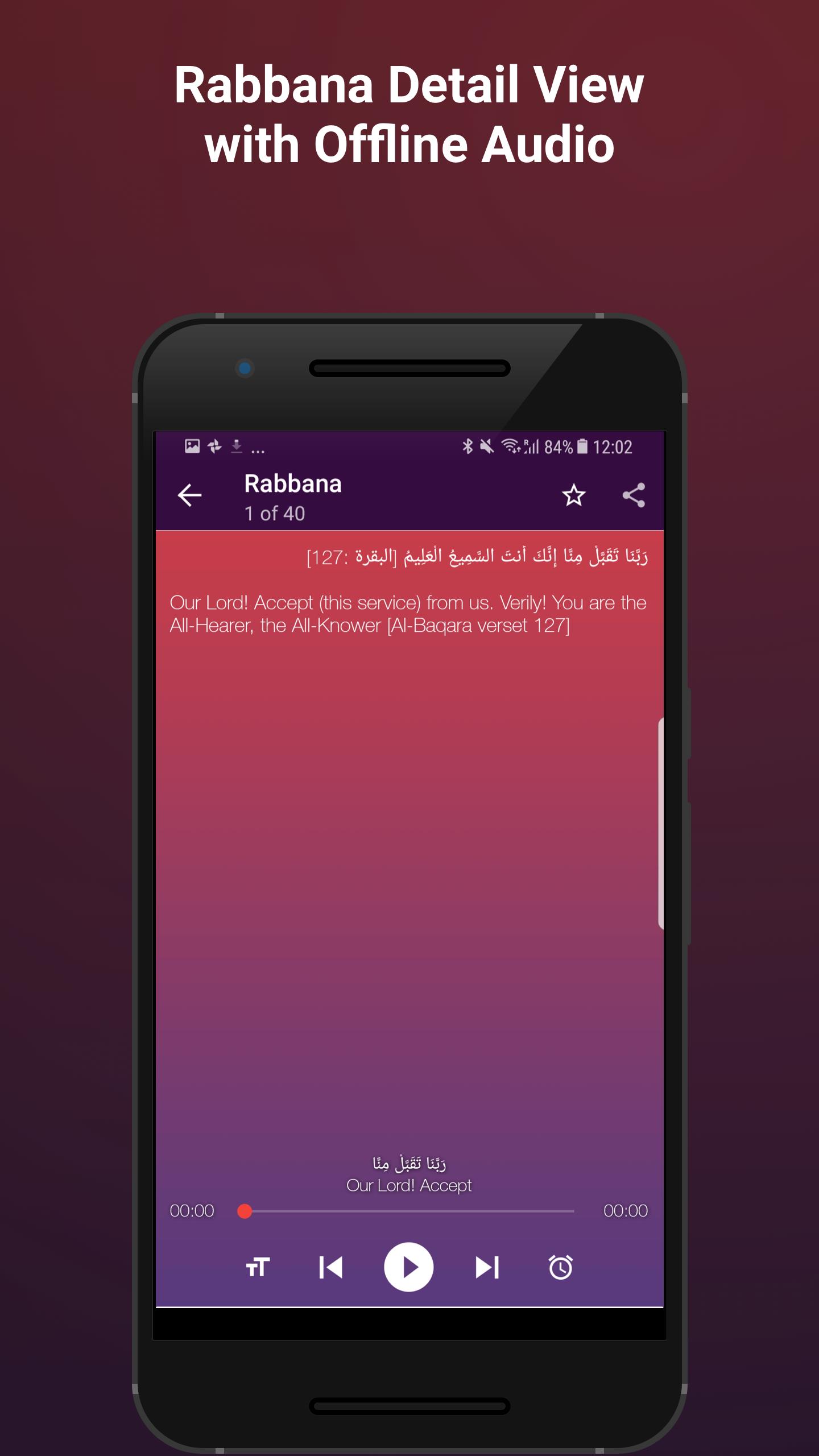 Приложение Rabbana также включает в себя аудио треки для прослушивания офлайн Duaas (без Интернета).