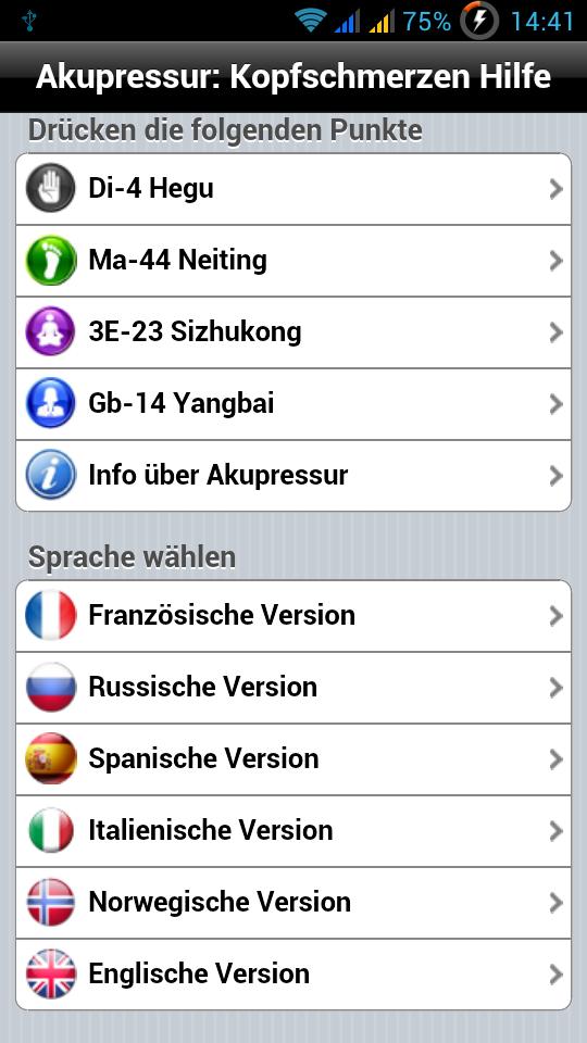 « Acupressure: Headache Relief » легко использовать приложение с иллюстрированными инструкциями, как сделать массаж точек акупресса. Акупрессура-это древнее исцеляющее искусство, которое использует пальцы, чтобы нажать ключевые точки на поверхности кожи, чтобы стимулировать естественные самообслуживания организма. Когда эти точки нажимают, они высвобождают мышечное напряжение и способствуют кровообращению крови и жизненной силы организма, чтобы помочь заживлению. Главным среди преимуществ исцеляющего прикосновения Acupressure является то, что оно безопасно делать на себя и других - даже если вы никогда не делали этого раньше! Внимание! Пациенты всегда должны проконсультироваться с лицензированным медицинским работником, прежде чем использовать акупрессуру или любую другую форму здравоохранения!