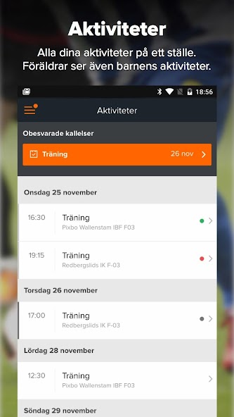 Приложение для вас, который является игроком, лидером, родителем, членом совета директоров или сотрудника ассоциации или отдельной команды, которая использует Team.se. Приложение упрощает ваш спортивный день и облегчает доступ как к доступу, так и распространению информации!