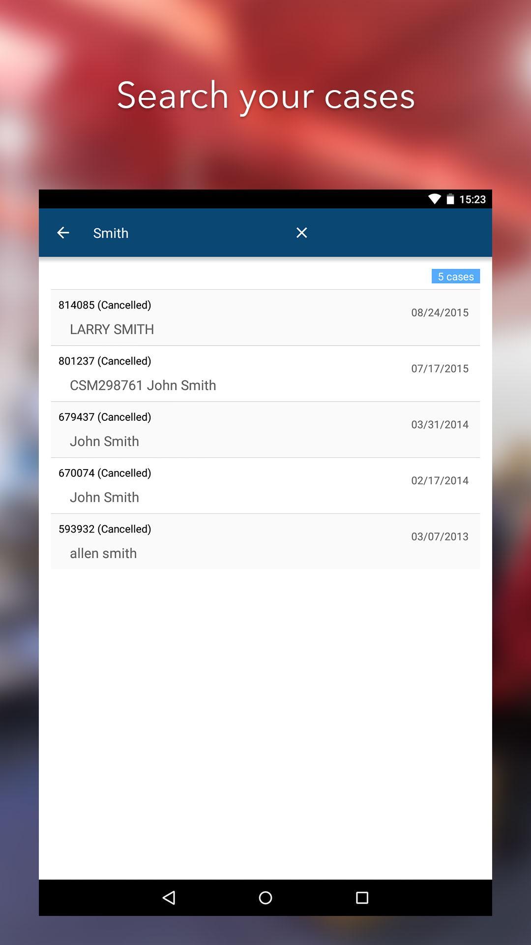 ● Поиск случаев по имени пациента
