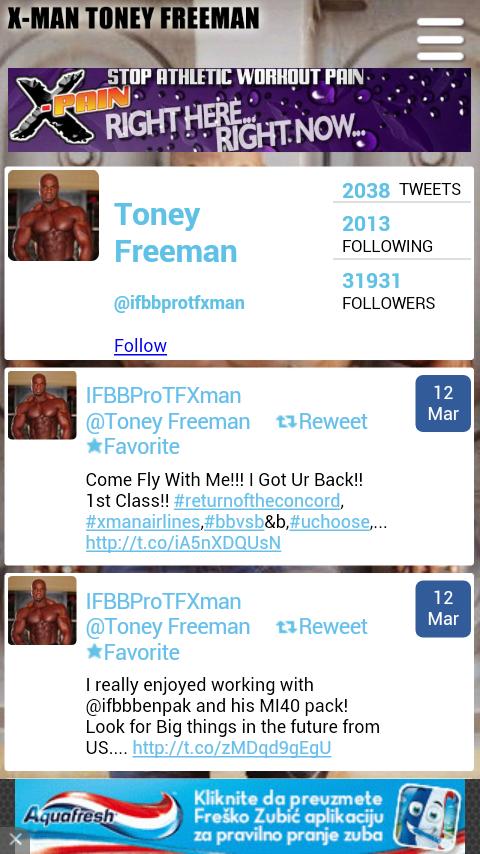 Изображения, новости, советы, звуки, блог из Xman's World от профессионального строителя тела Тони Фриман.