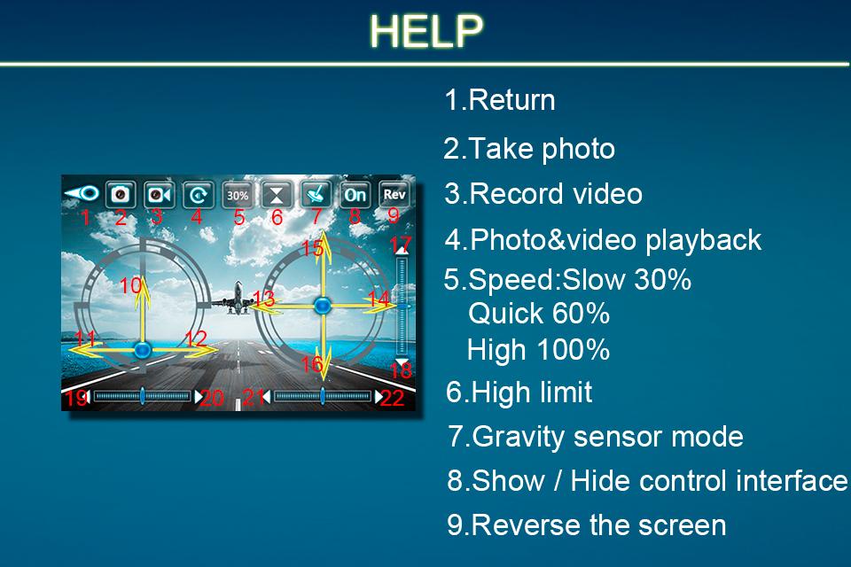 Это приложение может управлять самолетом 4 оси Wi -Fi на смартфоне Android, а также может получить видео в реальном времени с самолета, сделать фото и сохранить видео HD