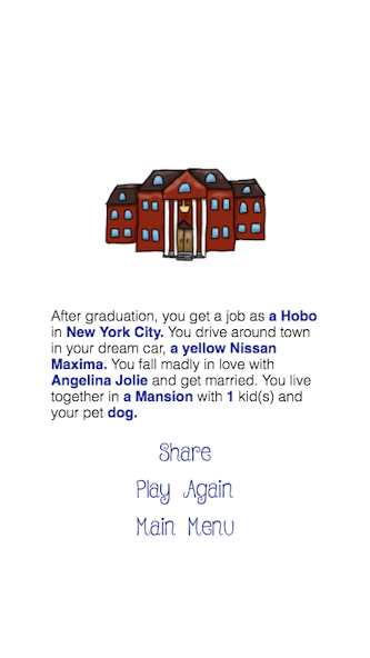 Классическая игра в Mash приходит к вашему карману и больше и лучше, чем когда -либо! Создайте и делитесь эпическими и удивительными историями, которые будут обеспечивать часы смеха и развлечений. Узнайте, где вы собираетесь жить и работать, и на кого вы выйдете замуж! Mash обозначает особняк, квартиру, хижину, дом и классическую школьную ручку и бумагу, которая теперь представлена ​​вам в эпической цифровой форме. Веселье когда -нибудь остановится? Наверное, нет, но есть только один способ узнать - играйте в Mash Party сегодня! Не требуется карандаш и бумага, батареи не включены.