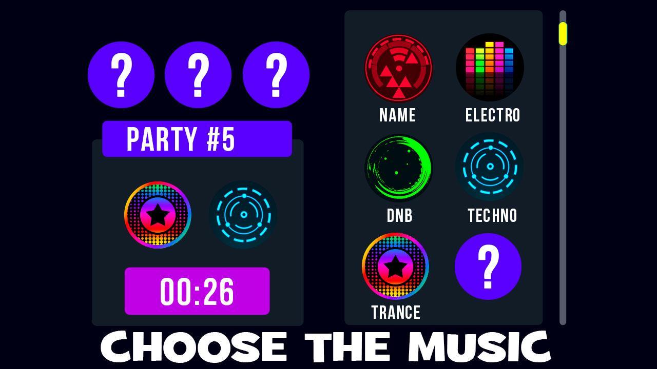 Выберите музыку, которую вы сыграете на вечеринке из большого разнообразия жанров электронной музыки - техно, дома, барабана N Bass, Dubstep и многих других!