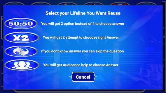 1) Пятьдесят пятьдесят (50/50): если участник использует эту жизнь, случайно два «неправильных» ответов будут удалены.