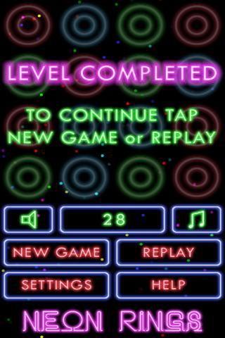 В игре неоновые кольца на игровом поле есть 16 цветных колец пар.