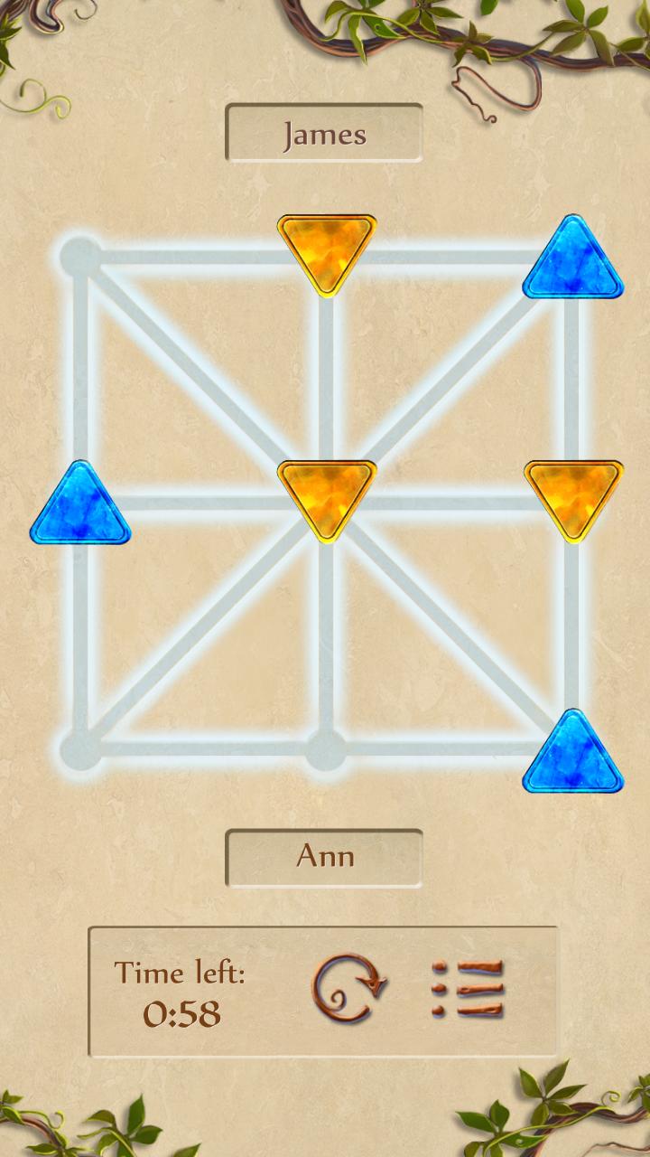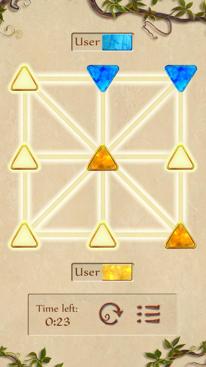 Тапатан - древняя настольная игра из экзотических Филиппин. Правила просты - у вас есть 3 камня, и цель состоит в том, чтобы установить их на доску подряд. Но это не будет легко - ваш оппонент не позволит вам одержать победу без битвы, и более 1500 комбинаций позиций сделают каждую игру сложной и интересной!