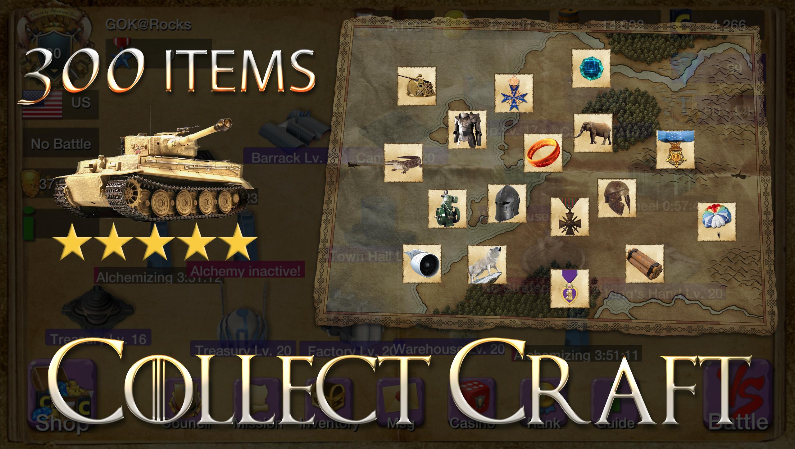 Создание легендарного оружия и оборудования, чтобы подняться над конкуренцией! Битва 100+ исторических кампаний, чтобы укрепить ваши королевства. Набор, поезд и командование 6 военных типов, состоящих из более чем 20 типов войск.
