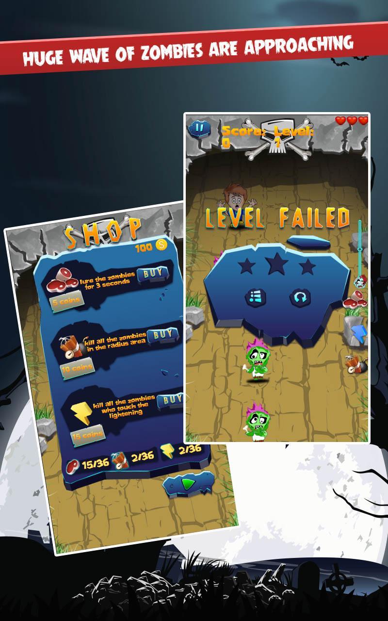 The mob of zombies will storm towards you to cross the red zone. Keep on tapping the screen until you eliminate that creature.