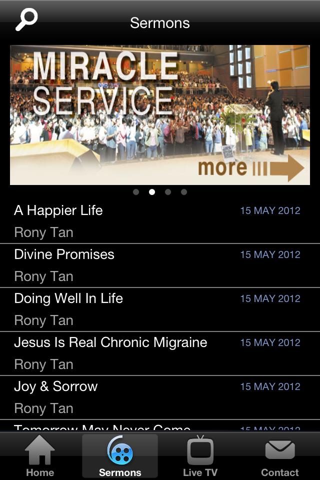 แอพนี้อนุญาตให้ผู้ใช้ดูคำเทศนาวิดีโอและหนังสือ ผู้ใช้สามารถรับชมเว็บคาสต์สดและอ่านคำให้การรักษาออนไลน์ได้