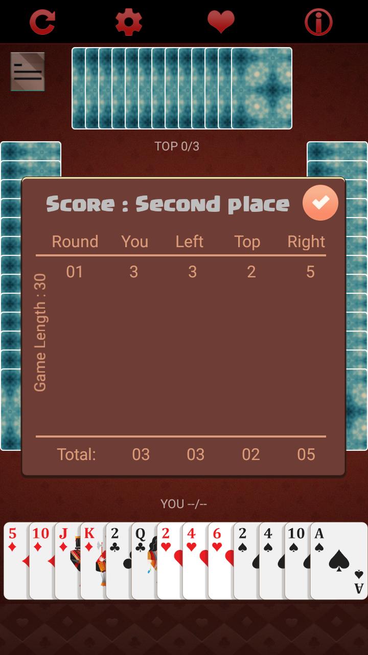 การ์ดของชุดสูทแต่ละชุดจากสูงถึงต่ำ AKQJ-10-9-8-7-6-5-5-4-3-2 โพดำนั้นเป็นเรื่องสำคัญอย่างถาวร: การ์ดของชุดจอบใด ๆ จะเต้นการ์ดของชุดอื่น ๆ