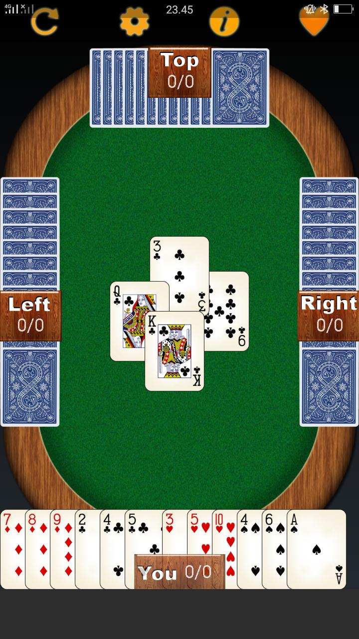 ทรัมป์ถาวร: การ์ดใด ๆ ของชุดจอบจะมีการ์ดใด ๆ ของชุดสูทอื่น ๆ การจัดการและการเล่นเป็นทวนเข็มนาฬิกา