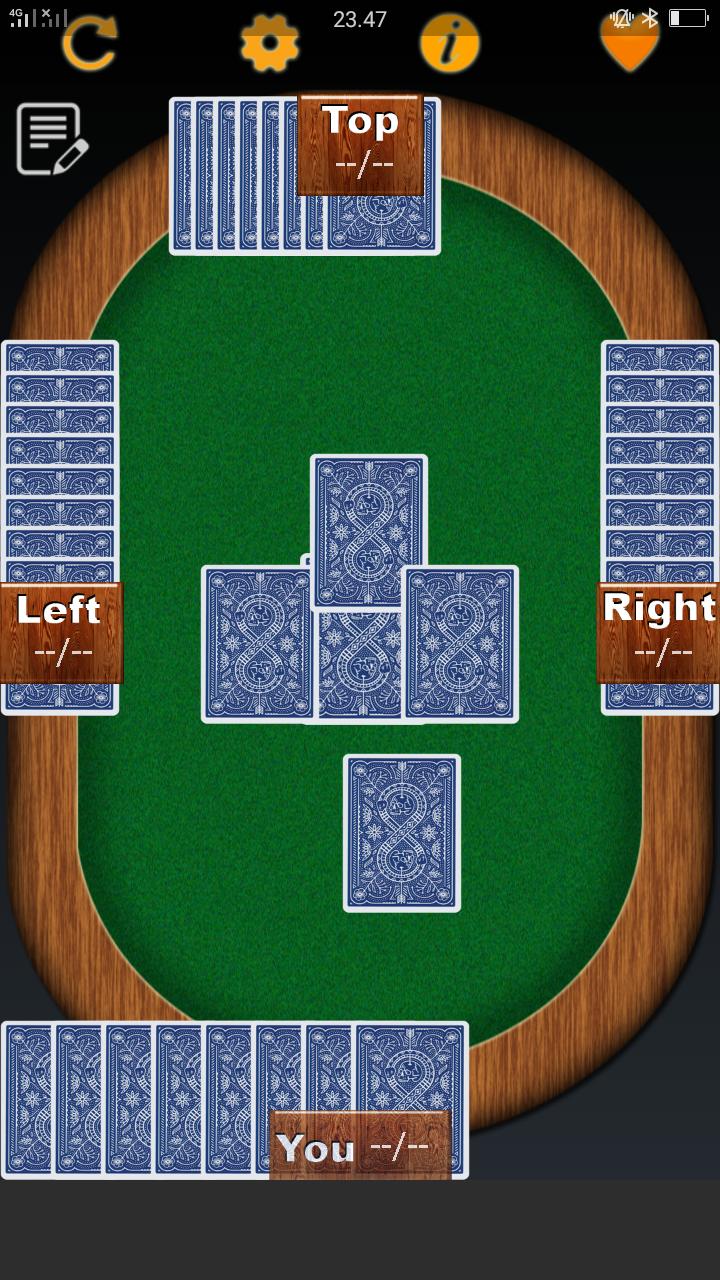 ผู้เล่นทุกคนอาจจัดการก่อน: หลังจากนั้นการเลี้ยวผ่านไปทางด้านขวา ดีลเลอร์จัดการการ์ดทั้งหมดทีละครั้งคว่ำหน้าลงเพื่อให้ผู้เล่นแต่ละคนมีไพ่ 13 ใบ ผู้เล่นหยิบการ์ดขึ้นมาและดูพวกเขา