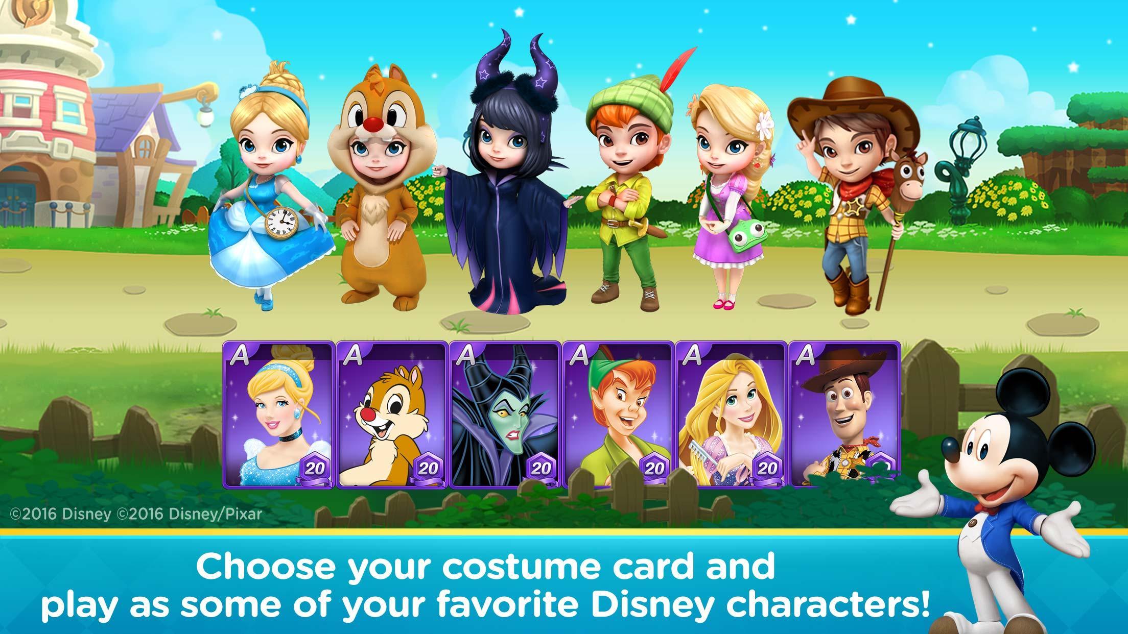 * การ์ดเครื่องแต่งกายสำหรับอวตารของคุณ: Cinderella, Maleficent, Snow White, Aladdin, Peter Pan, Woody, Buzz, Rapunzel และอีกมากมาย! ยิ่งคุณเล่นการ์ดเครื่องแต่งกายมากขึ้น!