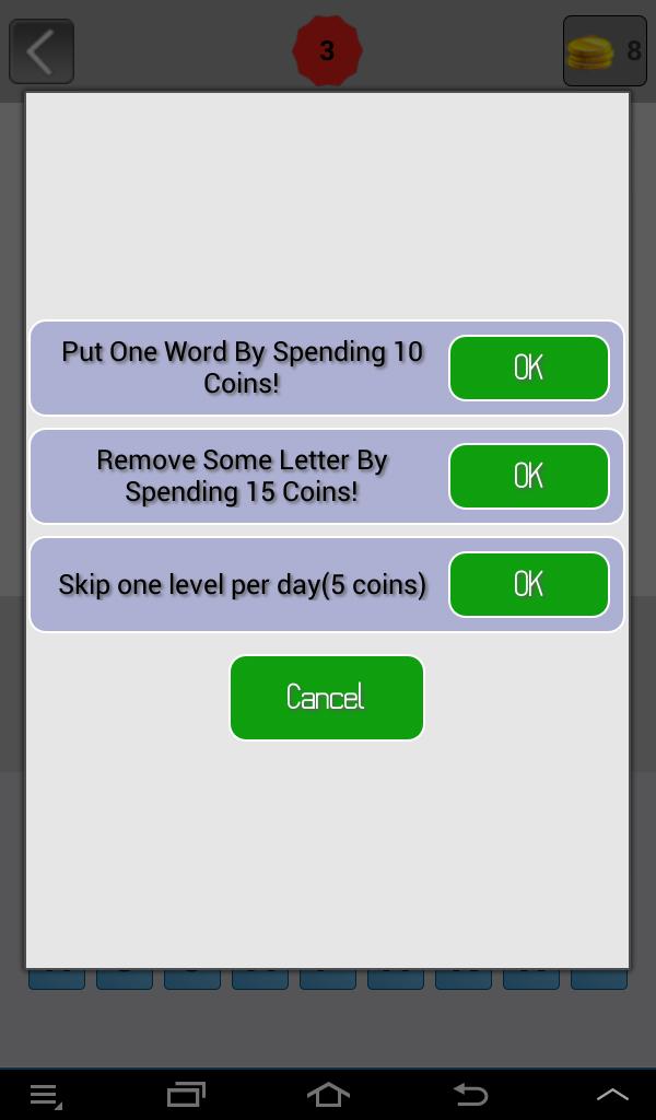 ติดอยู่กับปริศนา? ใช้คำใบ้และเปิดเผยให้ออกจากแยม คุณสามารถใช้พวกเขาเพื่อแสดงตัวอักษรแบบสุ่มหรือแม้แต่ลบตัวอักษรที่คุณไม่ต้องการ คุณสามารถใช้ความช่วยเหลือจากเพื่อน Facebook ของคุณเพื่อดูว่าพวกเขาสามารถช่วยคุณด้วยปริศนาที่ยากลำบากหรือไม่