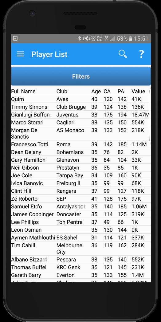 FMM Scout 2017 Lite เป็นวิธีที่เร็วที่สุดในการลาดตระเวนผู้เล่นและเจ้าหน้าที่ของ SI/SEGA Football Manager Mobile 2017 FMM SCOUT 2017 Liteis ออกแบบมาเพื่อรับและเข้ากับเกม