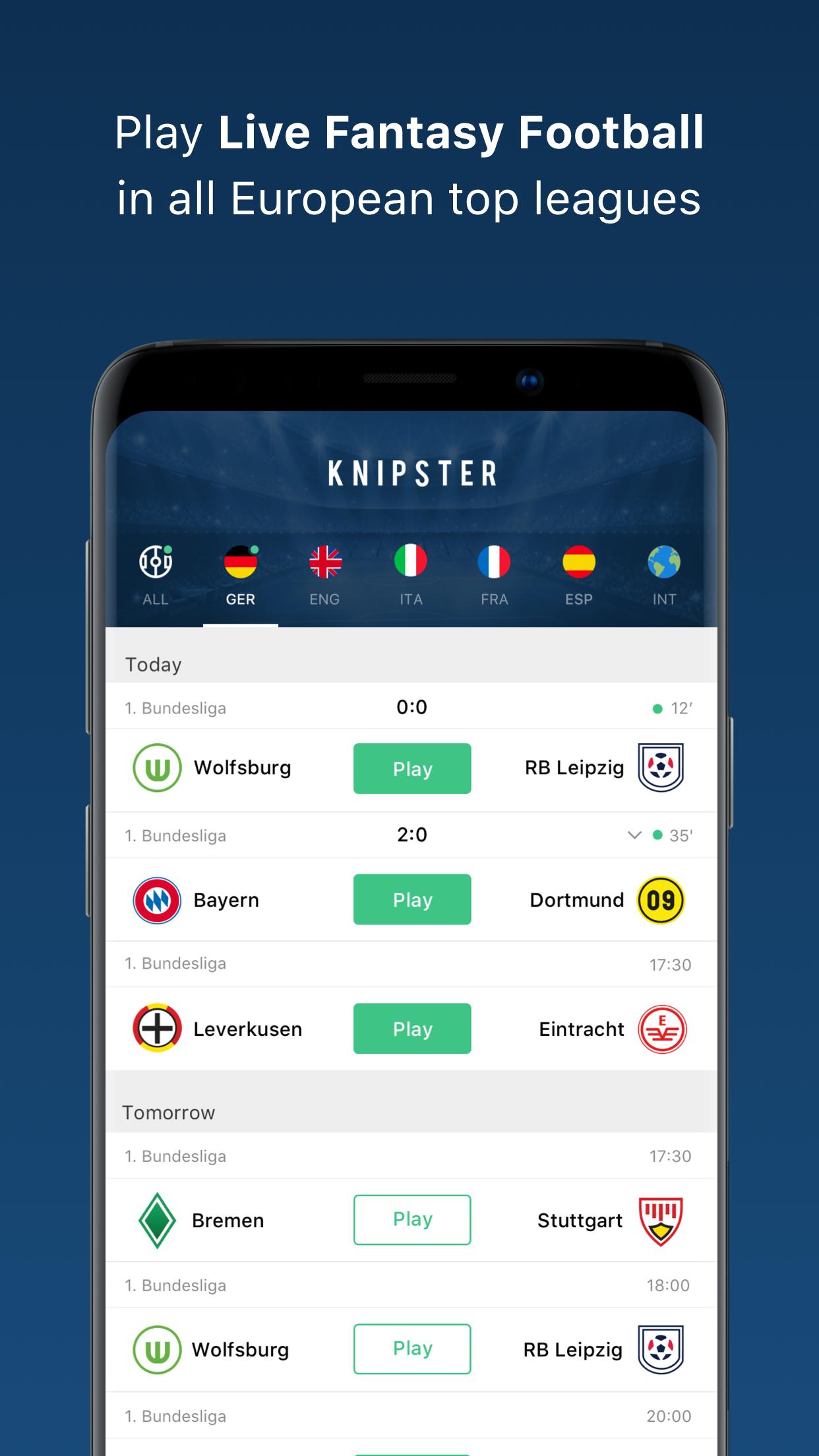 Knipster เป็นแอพพลิเคชั่นฟุตบอลแฟนตาซีที่คุณสามารถแข่งขันกับเพื่อนเพื่อนร่วมงานและแฟนฟุตบอลคนอื่น ๆ ของคุณ สร้างกลุ่มเชิญเพื่อนของคุณและตั้งค่าทัวร์นาเมนต์ด้วยการแข่งขันอันดับต้น ๆ ของลีกที่ใหญ่ที่สุดของยุโรป!