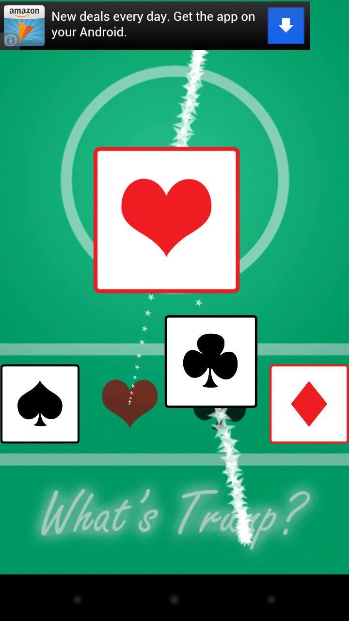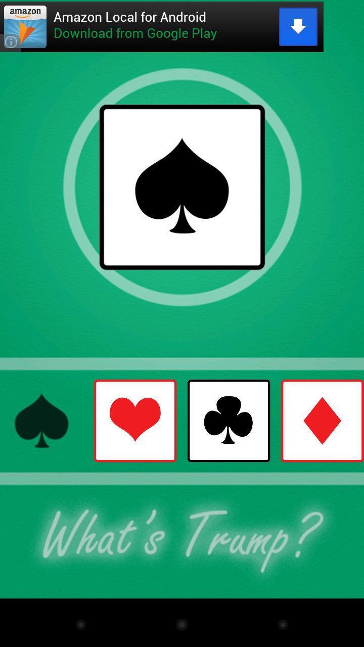คุณเคยสังเกตไหมว่าผู้เล่นการ์ดบางคนมีช่วงเวลาที่ยากลำบากในการจดจำทรัมป์ในตอนเย็นที่สวมใส่? ที่น่ารำคาญน่ารำคาญ ทรัมป์คือตัวบ่งชี้ทรัมป์แรกสำหรับสมาร์ทโฟนอยู่ที่นี่เพื่อช่วย เพียงแค่สัมผัสชุดที่เรียกว่าและจะใช้เวทีกลางบนวงกลมที่ด้านบนของหน้าจอ เร่งการเล่นเกมของคุณและลดความคับข้องใจของคุณด้วยสิ่งที่ทรัมป์ ใช้เมื่อเล่น Euchre, Spades, เก้าสิบเก้า, bezique, whist, เก้าการ์ดดอน, barbu, bridge, หรือ skat