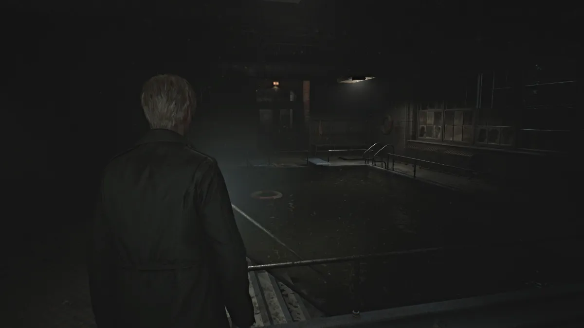 Approach it and a cutscene plays introducing James to Eddie Dombrowski , who seems strangely skittish and clearly unwell. He seems anxious to leave the town and asks James to come along, who politely refuses. หลังจาก cutscene ค้นหาอพาร์ทเมนต์สำหรับรายการและก่อนที่จะไปที่บริเวณสระว่ายน้ำซึ่งคลานไปด้วยตัวเลขโกหกดังนั้นคุณจะต้องนำทางอย่างระมัดระวัง