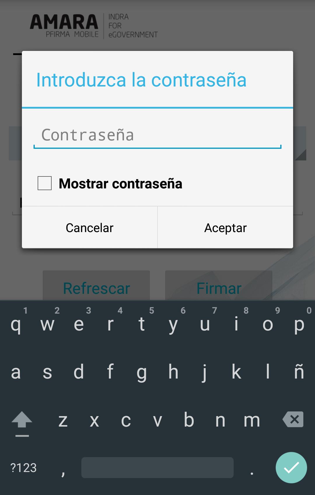 通过AMARA PFIRMA de Indra在Android设备上实现签名的组成部分。