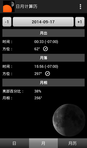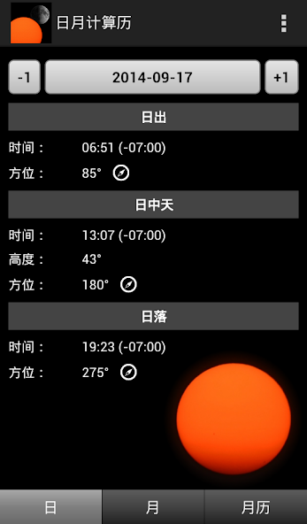 - 在您所在的位置上升并设置太阳和月亮的指示。