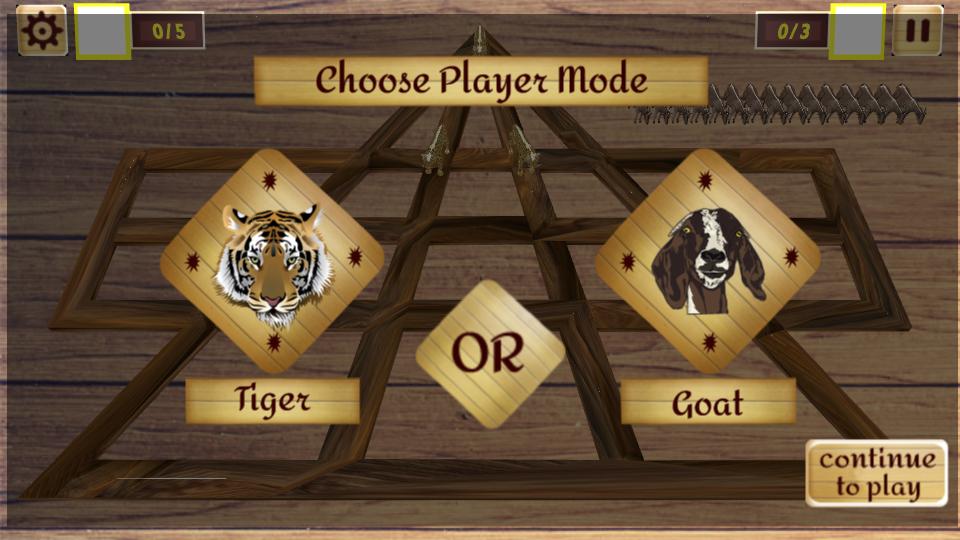 Aadupuli Aattam (山羊和老虎游戏)是一款战略性的,两人(或2支球队)的棋盘游戏,起源于泰米尔纳德邦(Tamil Nadu),也在卡纳塔克邦(Huli Gatta)和安德拉(Andhra)帕拉德什(Puli Joodam or puli or puli -meka)中播放。该游戏是不对称的,因为一个玩家控制了三只老虎,另一个玩家控制着15只山羊。山羊试图阻止老虎队的动作时,老虎“狩猎”山羊。