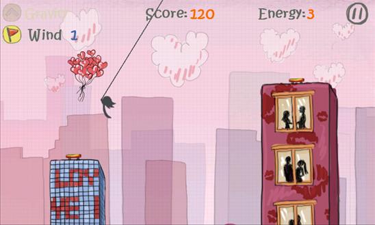 您唯一需要做的就是在屏幕上敲击以在适当的时间释放绳索,然后让男人跳到下一个建筑物的顶部。照顾不同的风力和重力,这两个都会影响您的着陆。在建筑物的不同区域降落也有不同的分数和奖金。