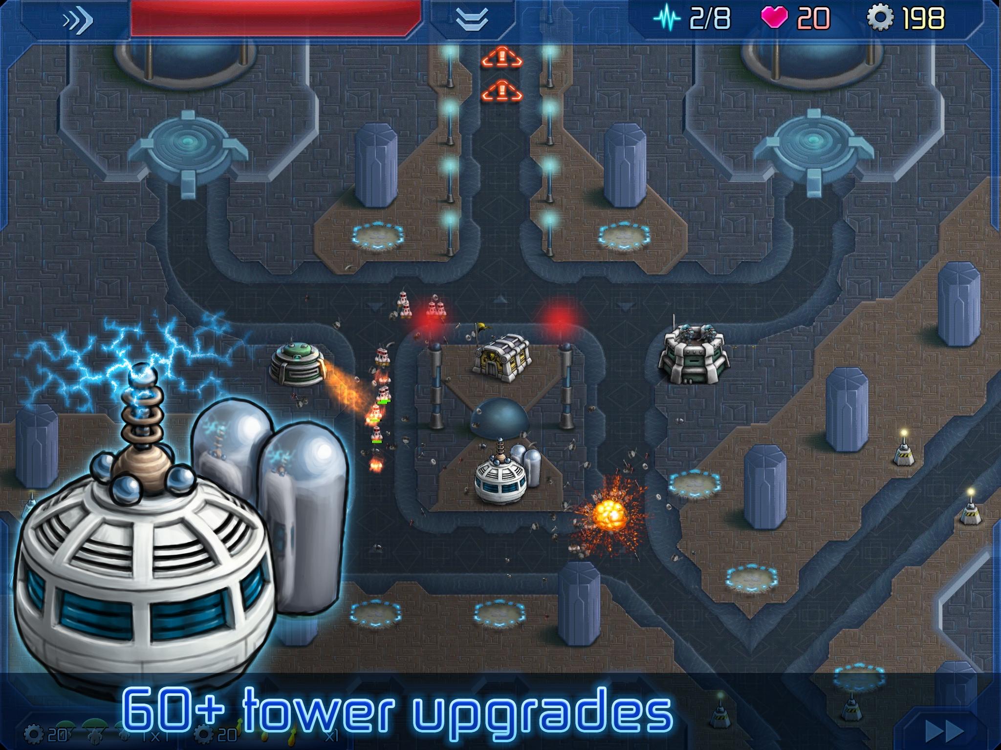 ●经典的塔国防动作游戏,爆炸,碎屑,子弹和导弹