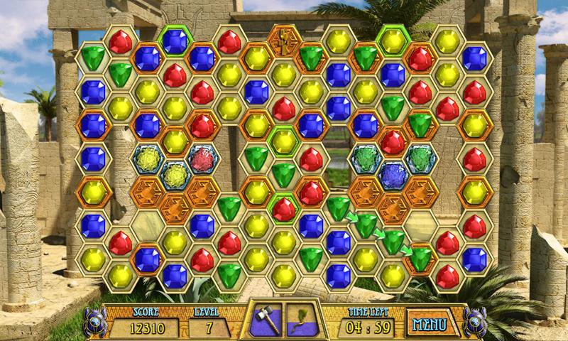 游戏任务是摧毁所有石砖。通过单击一个数字来形成三个或多个相同颜色的珠宝的链,并将其拖到相同颜色的其他相邻图形中,所有这些都将消失。如果链中的图下有石块,它将被摧毁。在这款出色的匹配拼图游戏中,享受出色的图形,悠扬的音乐,众多级别以及各种独特的娱乐奖金!