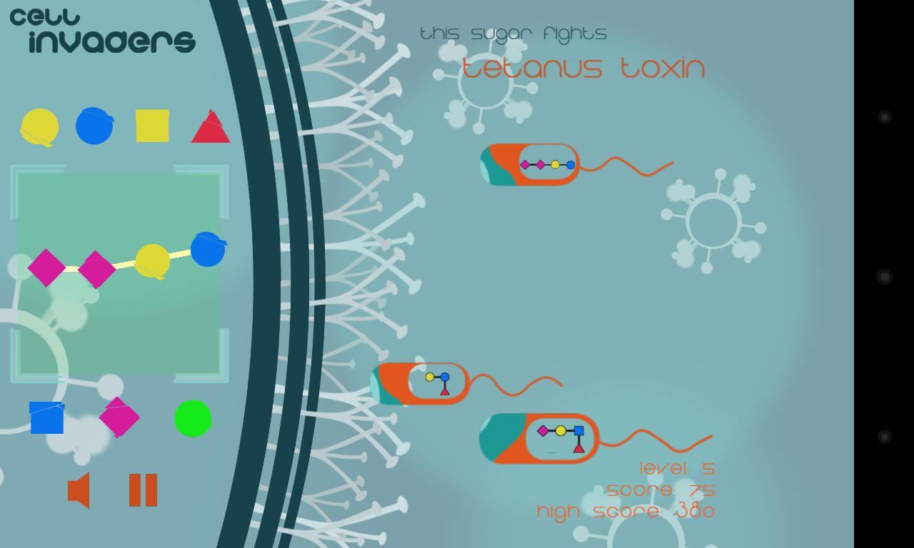 在Cell Invaders中,您会迅速组装复杂的糖,以抵御病原体!