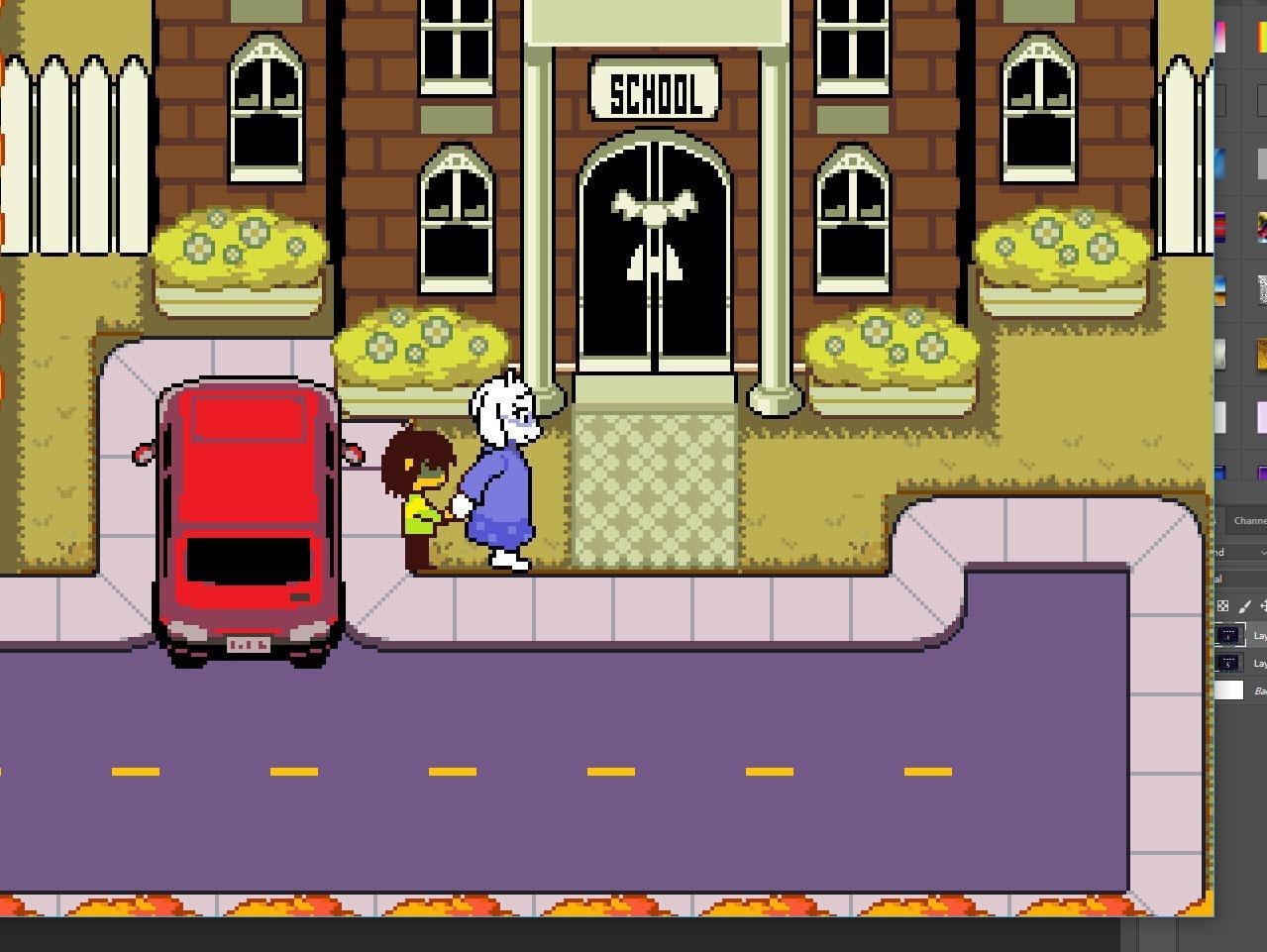 托里尔(Toriel)将克里斯(Kris)赶到学校,这是看到更熟悉的面孔的地方。这