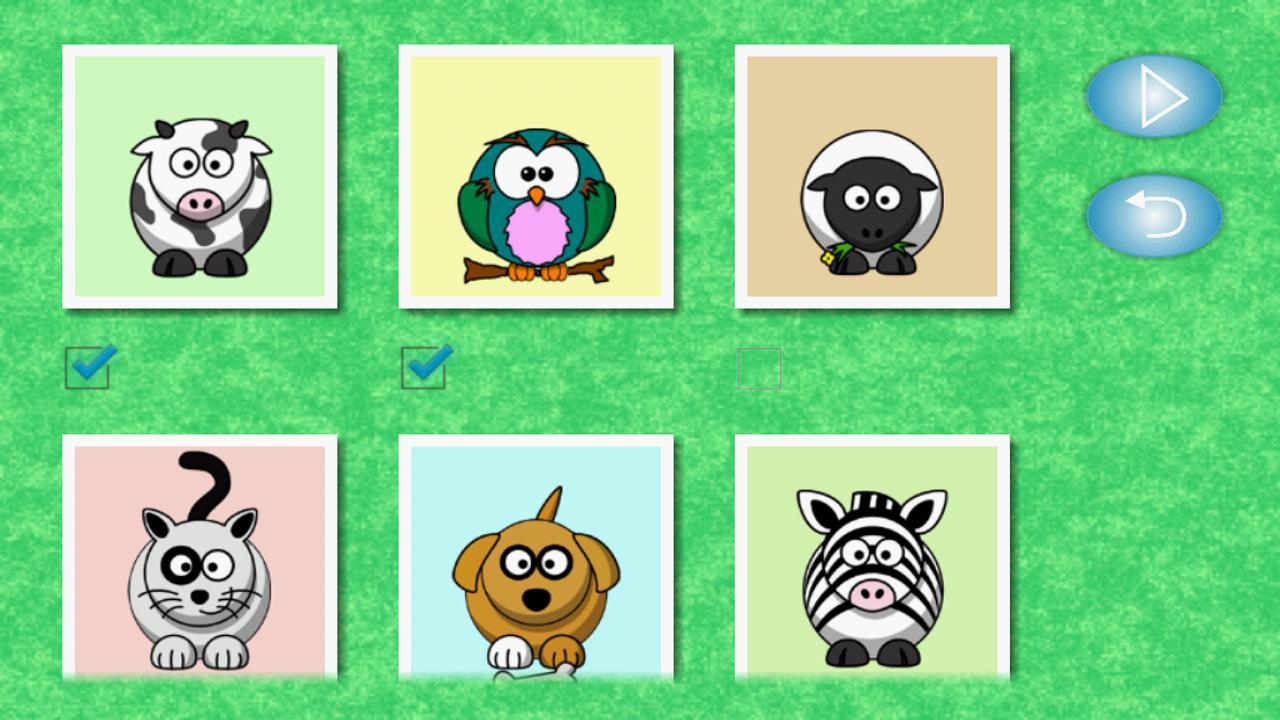 可以从2 x 1到5 x 5选择立方体数。可以选择任何数量的动物 - 从2到32。因此,可以为不同年龄的孩子配置游戏。有一个带有动物名称的提示可以帮助学习它们。完成的动物宣布其本地声音。从立方体侧面的图片可以随时保存到画廊(即使在立方体旋转期间)。立方体背景可以切换到单色,以使有趣的动物看起来更自然。
