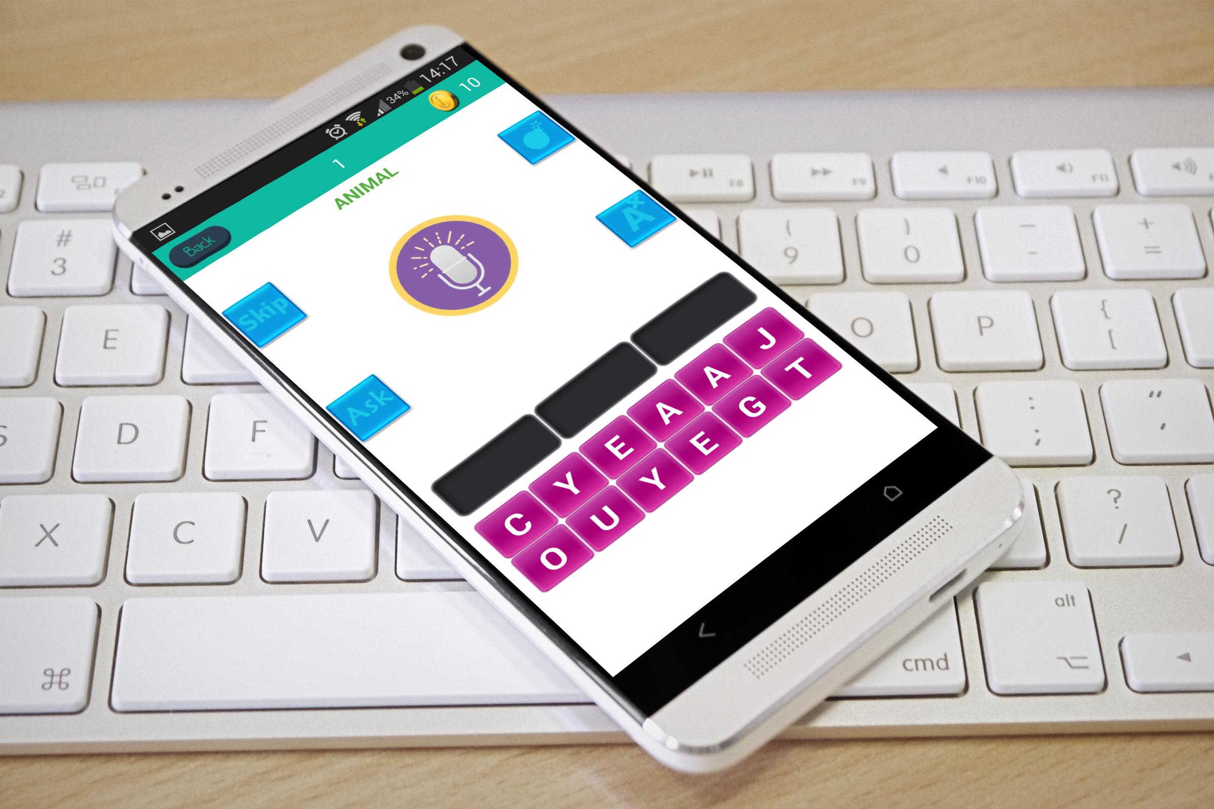 让我们猜测这首歌的提示以显示艺术家或歌曲名称,并使用助手显示字母,艺术家声音的图片,并显示所有歌曲名称。