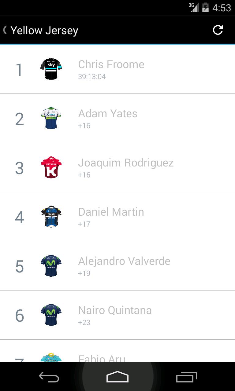 2016年环法自行车赛已经开始,克里斯·弗鲁姆(Chris Froome)领先。该应用程序可让您保持最新状态,并提供所有21个阶段的完整详细信息。