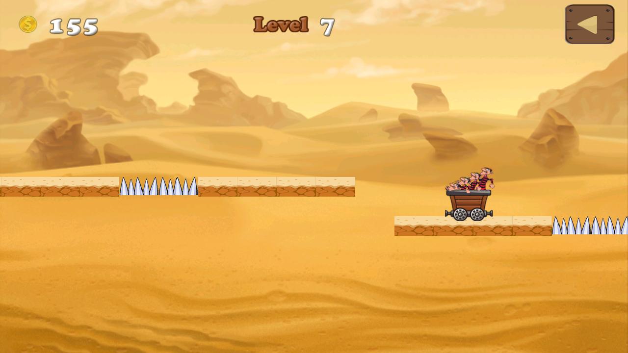 Les Daltons Adventure是简单的有趣游戏。匆忙,跑步并跳跃!