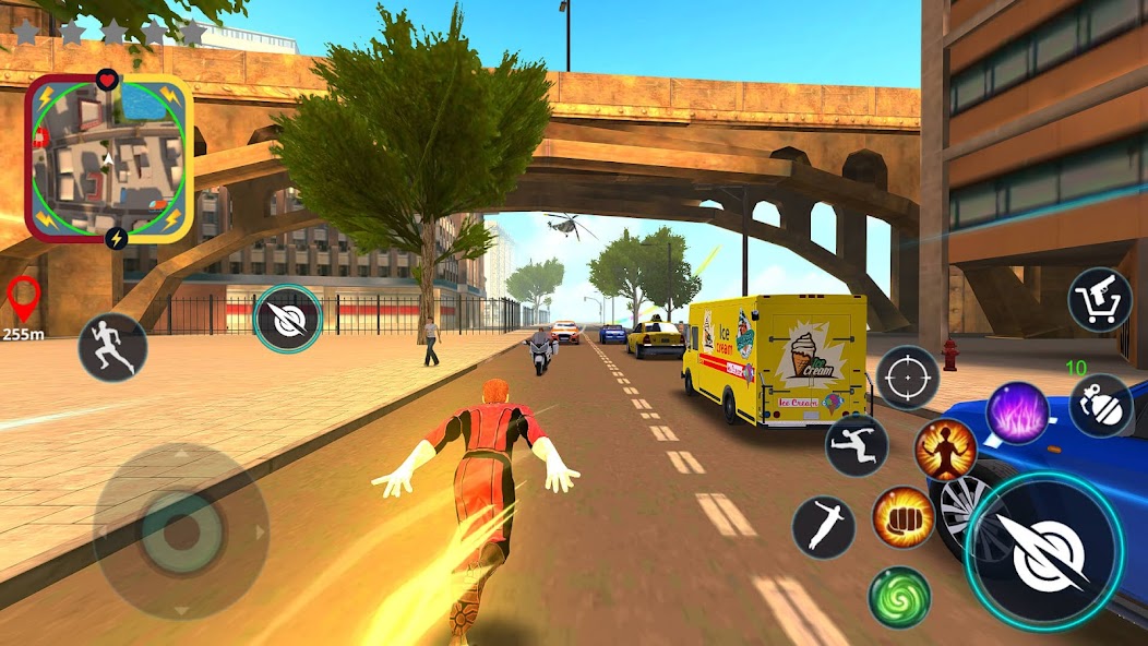 选择您喜欢的车辆或自行车来驾驶或飞行直升机射击游戏,除了在RPG战斗模拟器犯罪城市中,除了任务之外,还可以探索城市。享受充满动作的轻速英雄世俗的蜘蛛超级英雄与黑帮及其敌人的战斗。在黑暗街道的各个地点,在幻想战斗中使用超速灯英雄的惊人闪电能力。在Light Speed Hero Rescue Fire游戏中使用新能力,瞄准开放世界射击游戏。成为一个简单的人的绝对超级英雄,在一次飞行中击败所有敌人。