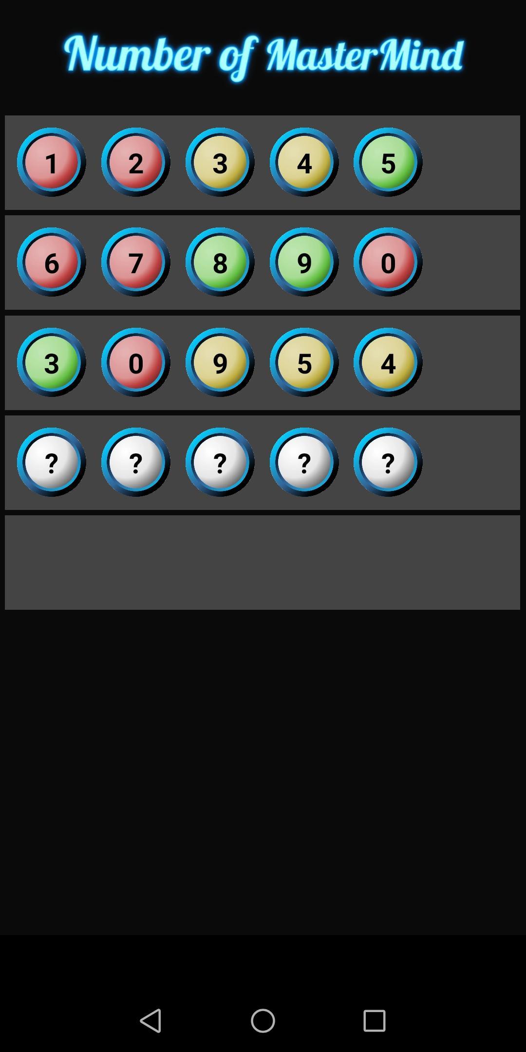 按下检查按钮后,您可以看到哪个数字正确,哪个数字是错误的,红色表示数字没有该数字,而黄色表示数字具有该数字,但其位置不正确,而绿色表示正确的位置在正确的位置。如果您有5个绿色数字,那么您有答案。