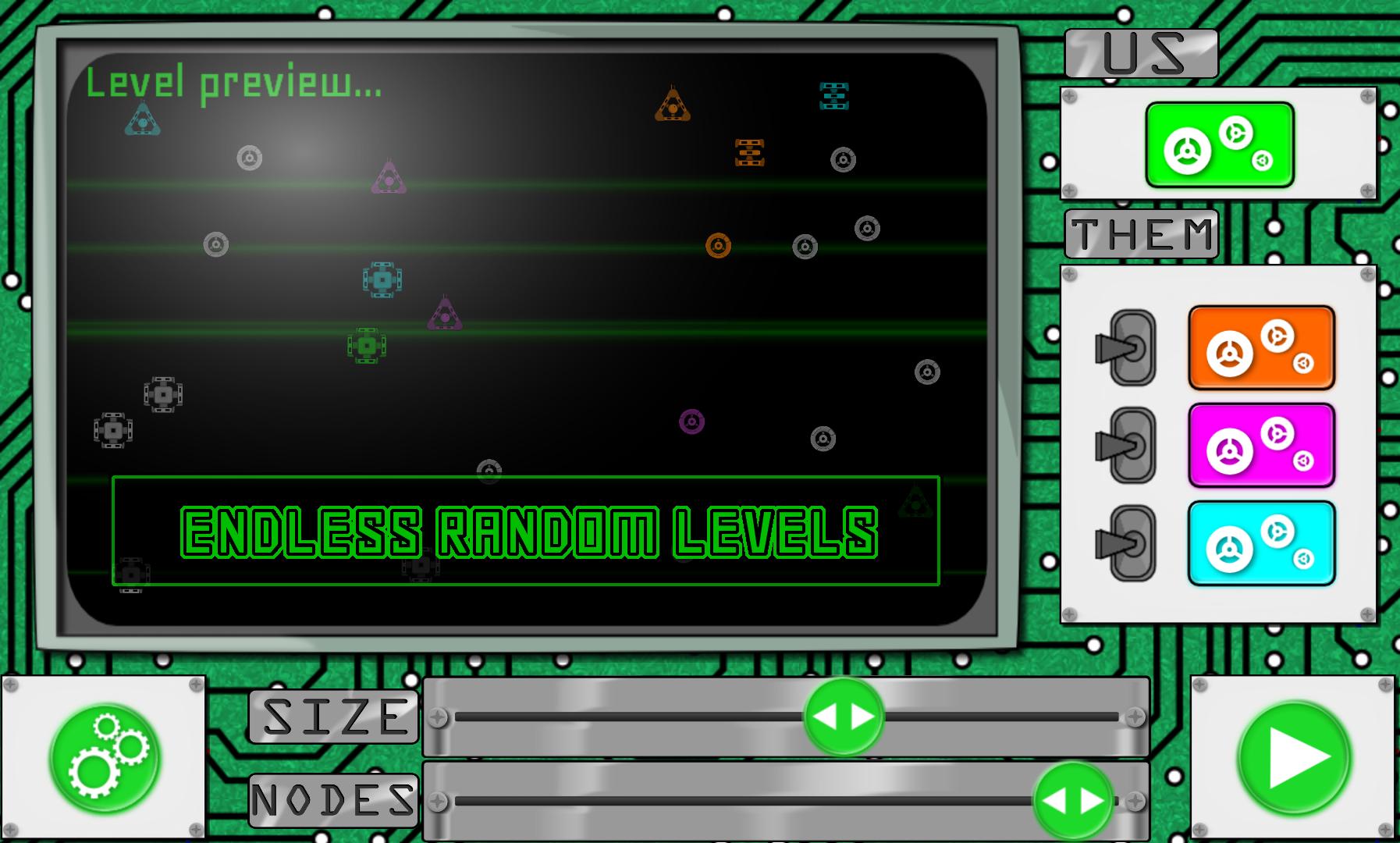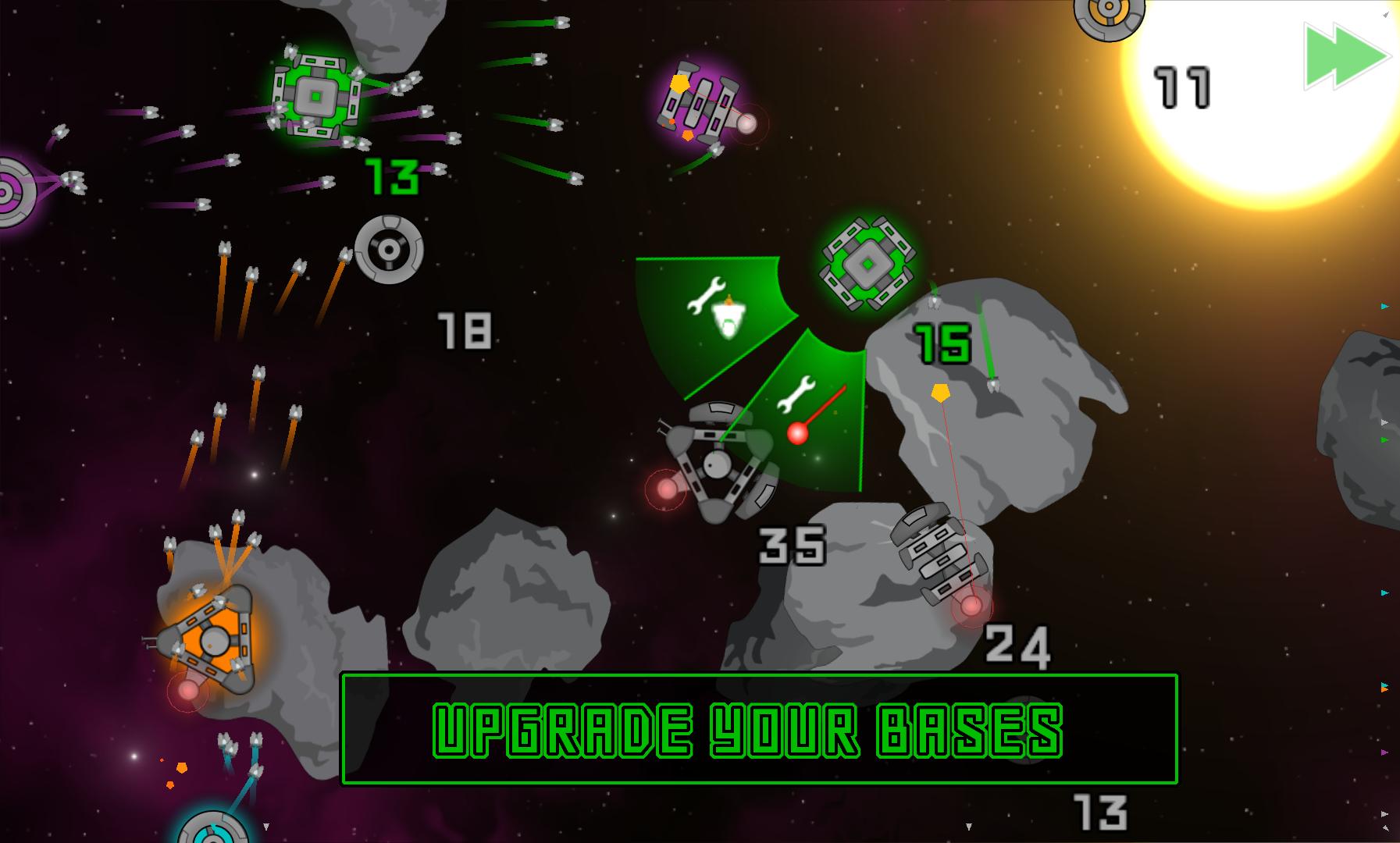 计划您的攻击以捕获最有利的节点,并为您的电台添加战术升级。在比赛中最多可以与三支AI球队比赛,这些比赛易于拿到但很难掌握。