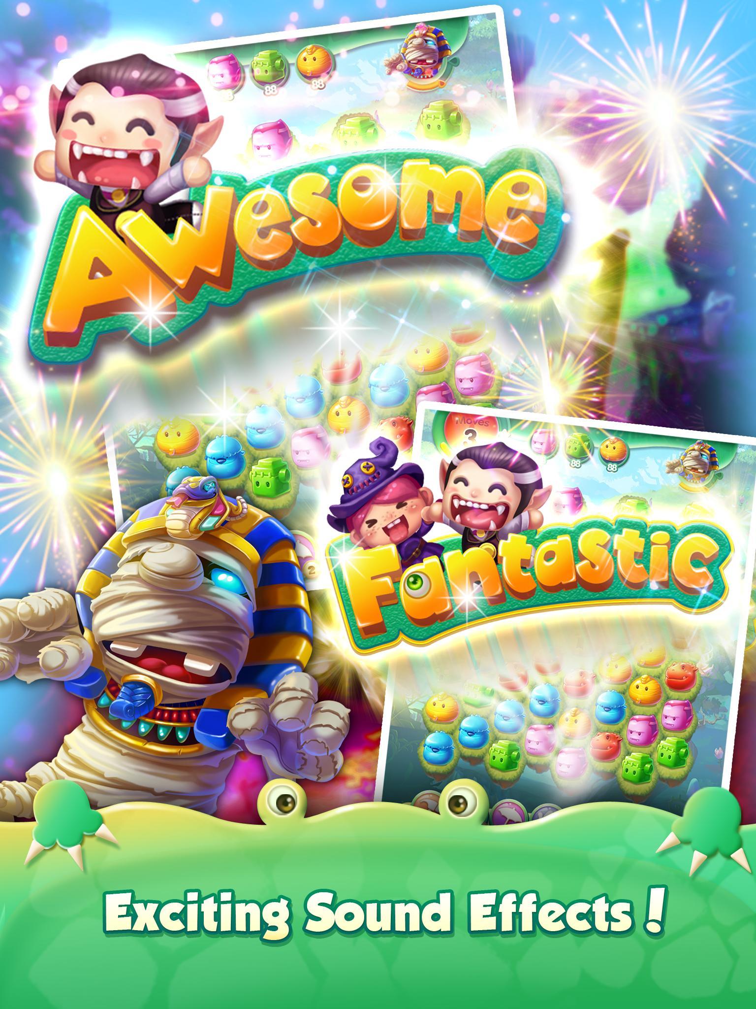 以最高的成绩挑战您的朋友,看看谁能达到最远的水平。在这个神秘世界的每个地区解锁可爱的怪物。通过收集怪物来释放强大的助推器和组合。结合怪物的助推器与完整的水平。然后坐下来庆祝每一次光荣的胜利,在怪物大结局中以惊人的效果!玩Monsters! - 最好的益智游戏!