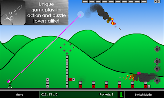 为了使Mutu (主要角色)移动,只需沿您希望他跳的方向,他就会! Mutu还可以双跳,这使他变得更高,甚至在空中改变方向!如果您有火箭,可以通过按“开关模式”按钮来使用火箭发射器,这是通过长时间在屏幕上的瞄准,然后通过释放来启动。重新进入跳跃模式很容易 - 只需再次按“开关模式”按钮即可。