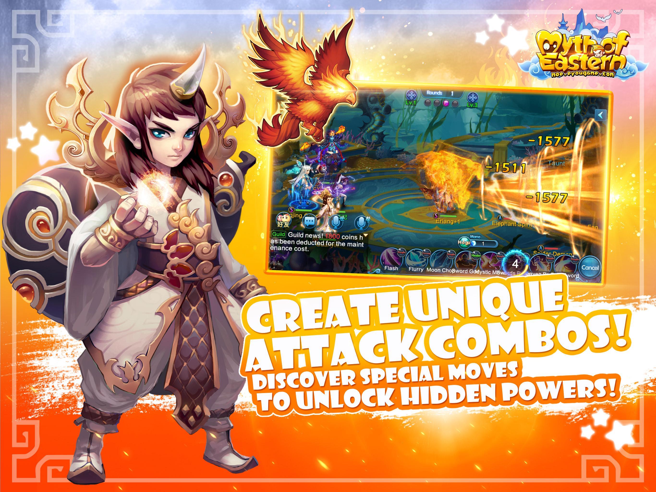 Cocos-2DX的技术在此游戏中展示,与韩国风格的新时尚,韩国和东方幻想风格的完美结合,创造了高质量的角色设计和神话背景。 Myth of Eastern的开发团队使用了广泛的背景,宫殿,灯,铁轨,植物和其他材料来丰富该游戏的视觉效果。