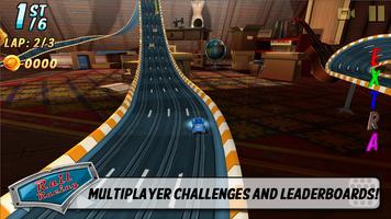 将您的汽车鞭打在老虎机之间,并提防接送器,助推器和障碍物。在对手后面滑行,然后将他们赶走以超越。将您的汽车最大化,但请注意不要以太高的速度击中这些曲线。