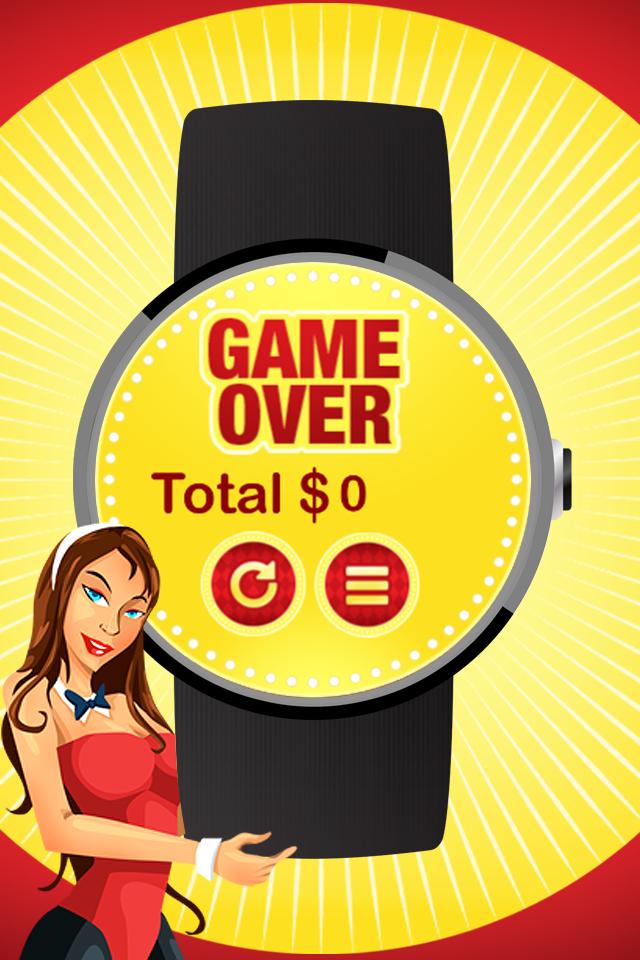 适用于Android Wear智能手表的老虎机很容易发挥作用,很有趣,可以在不花钱的情况下赢得胜利。它为您提供手腕上最好的赌场体验。如果您的信用零,您可以从商店购买更多积分。该游戏为您提供一些华丽的图形,流畅的动画和令人耳目一新的氛围。听起来可以保证高级插槽体验。