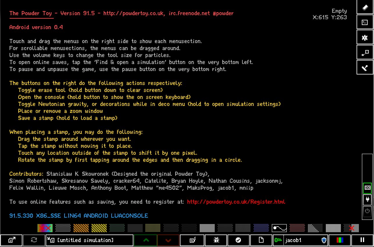 The Powder Toy现已登陆 Android!这次它得到了官方支持,完全免费,并且针对触摸屏设备进行了稍微优化,而不是 Powder Toy 通常运行的传统鼠标和键盘。