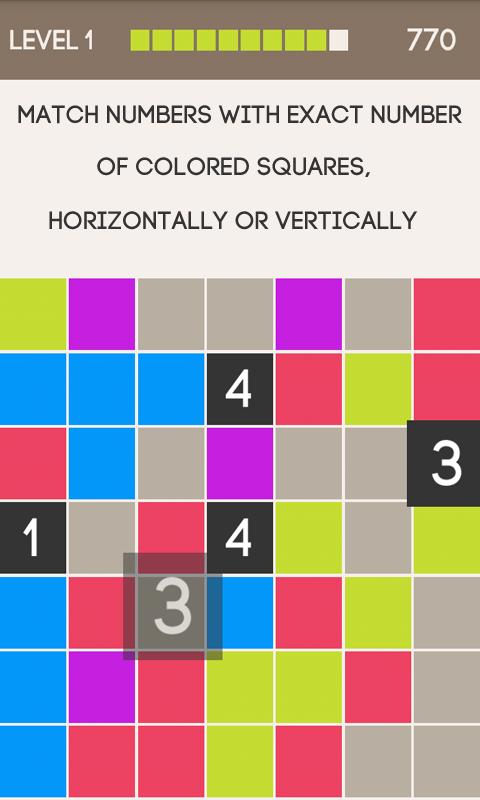 •拖动彩色块或数字块,然后放在灰色的单元上