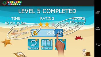 Vocabul Jumble为您提供了与时间限制或轻松的游戏玩法(无需时间限制 - 需要进行应用程序内购买)的选项,以得分,收集硬币并赚取每个级别的星星评级。