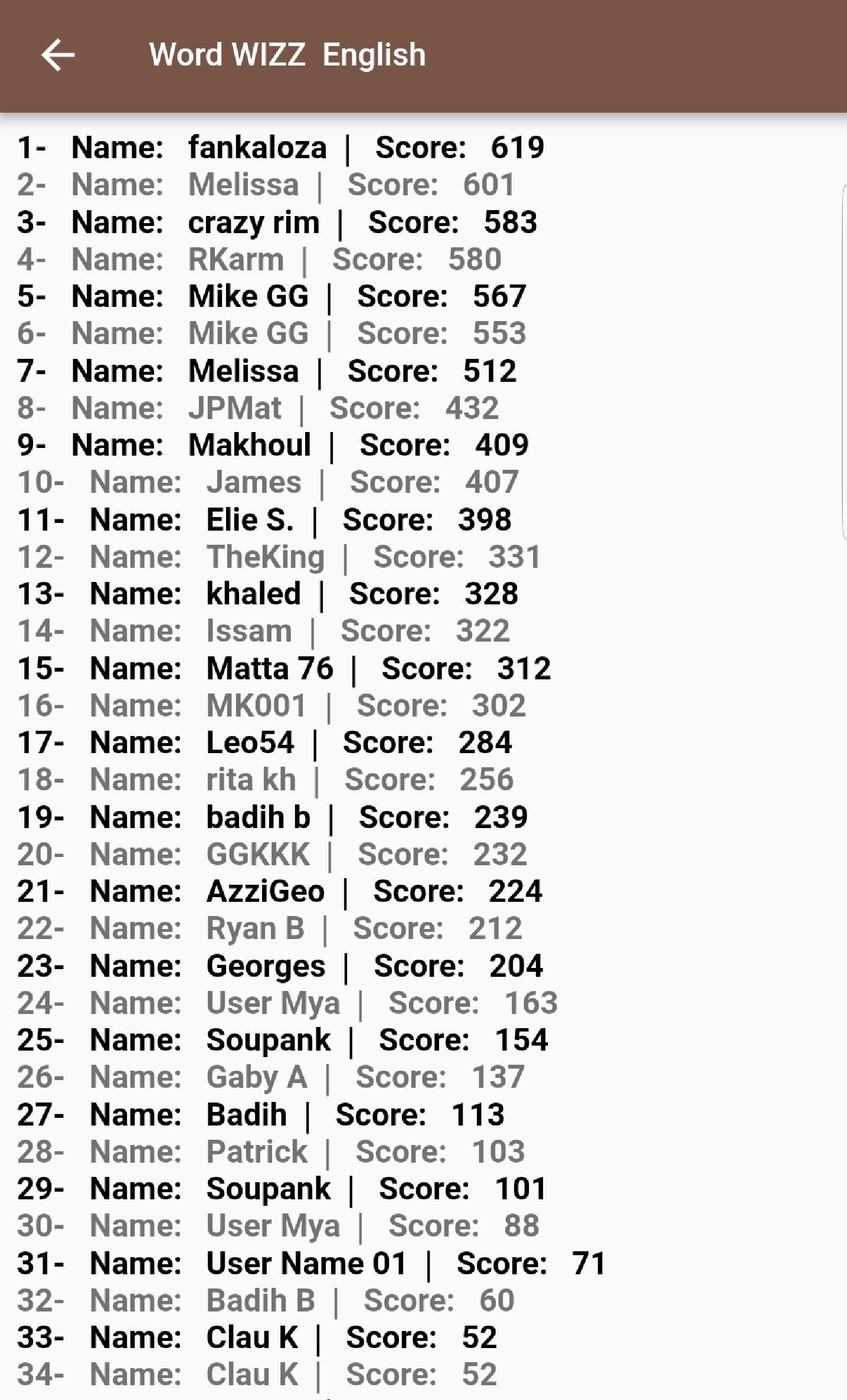 - 如果用户通过放置匿名用户名来决定并在每个会话结束时单击显示,则播放器得分将发布。