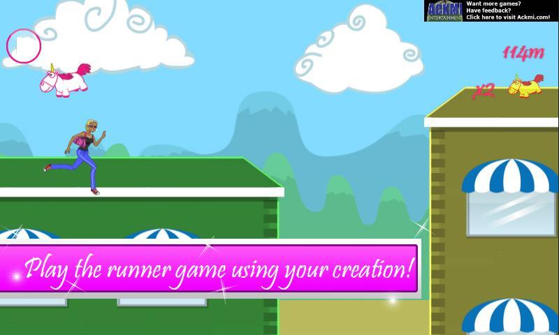 - 新:您現在可以與自己的作品一起玩遊戲!創建您的女孩,並在屋頂上玩Runner Game-Race-Race Race,收集盡可能多的獨角獸,看看您可以走多遠!