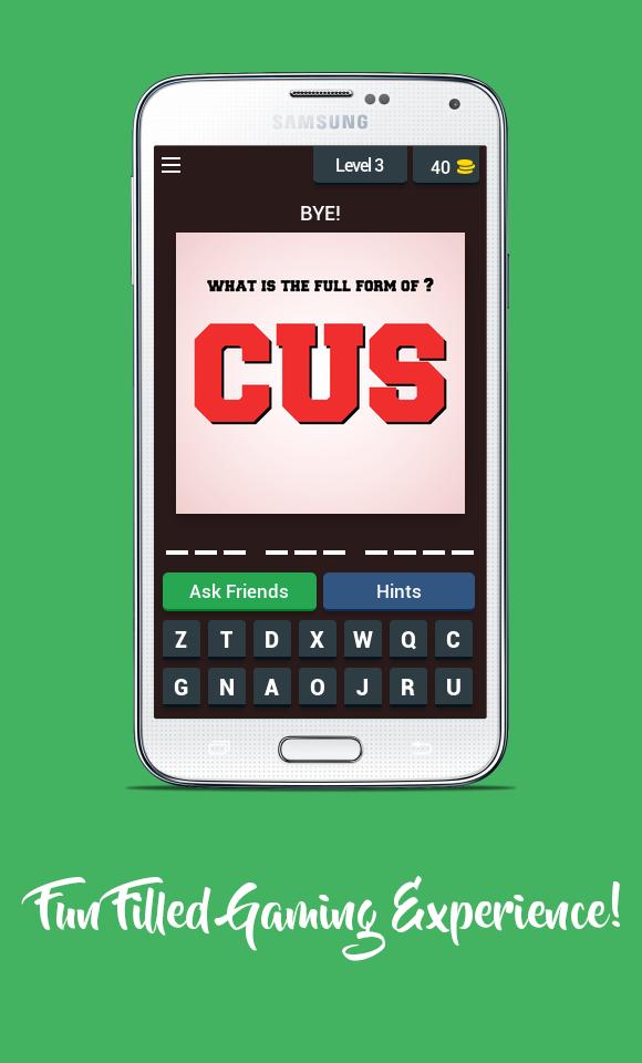 ★如何玩?點擊字母輸入。猜猜首字母縮寫詞,然後用正確的拼寫鍵入單詞以獲勝!這是一個文字遊戲!